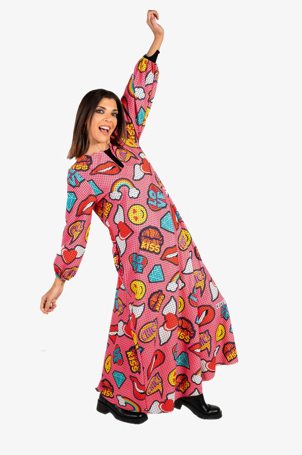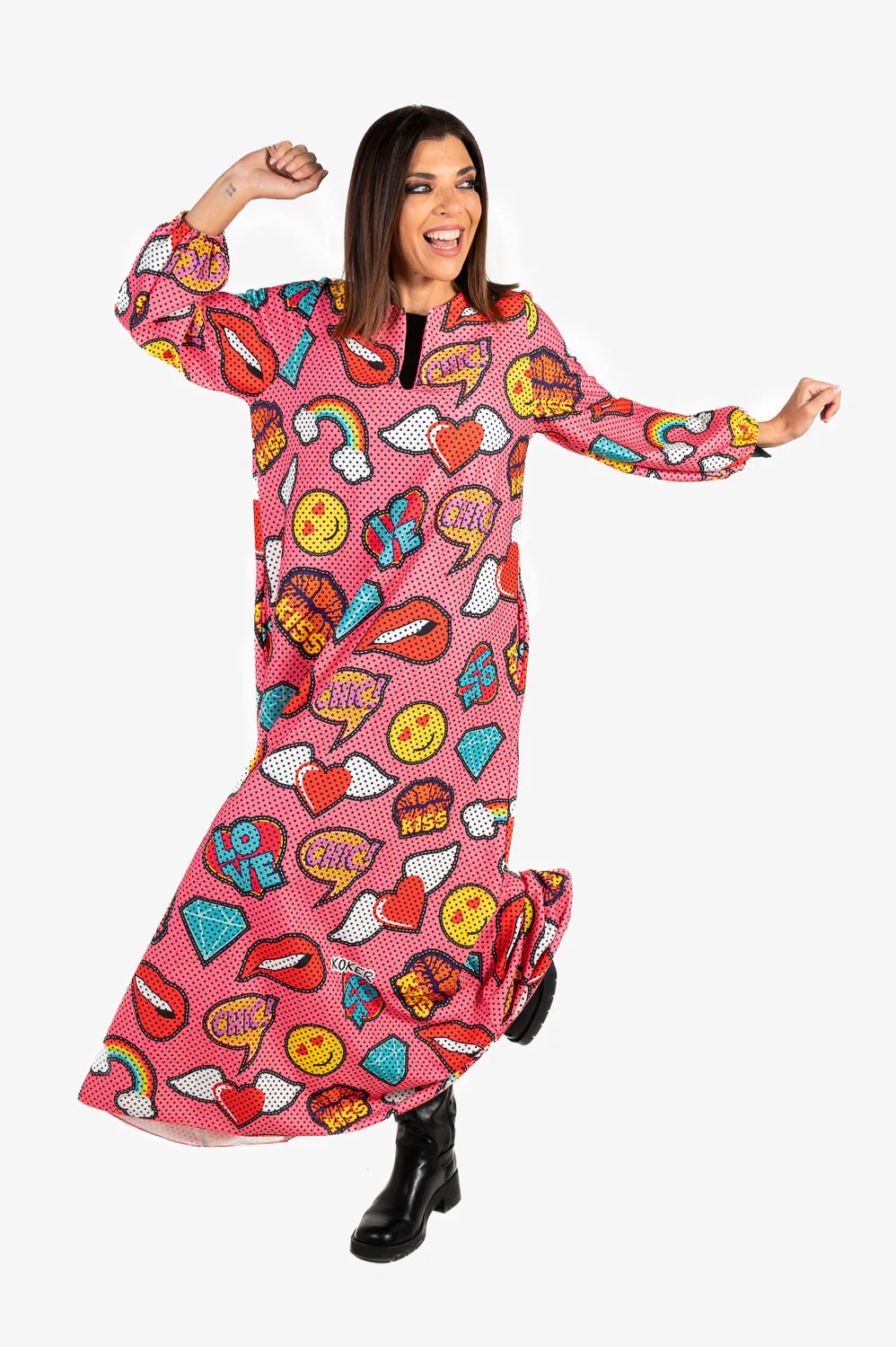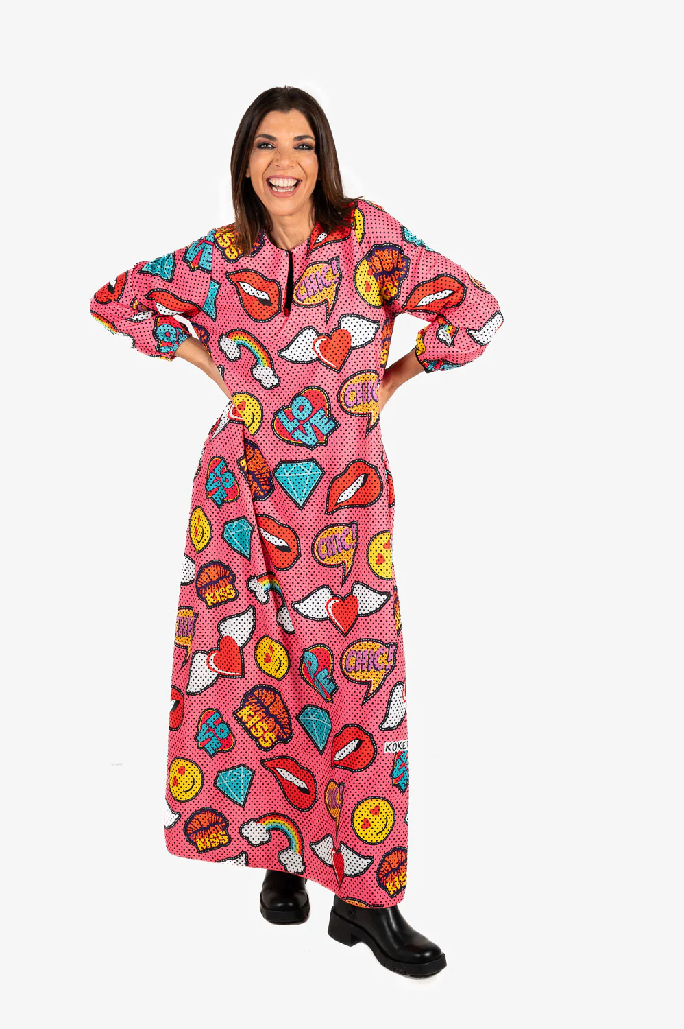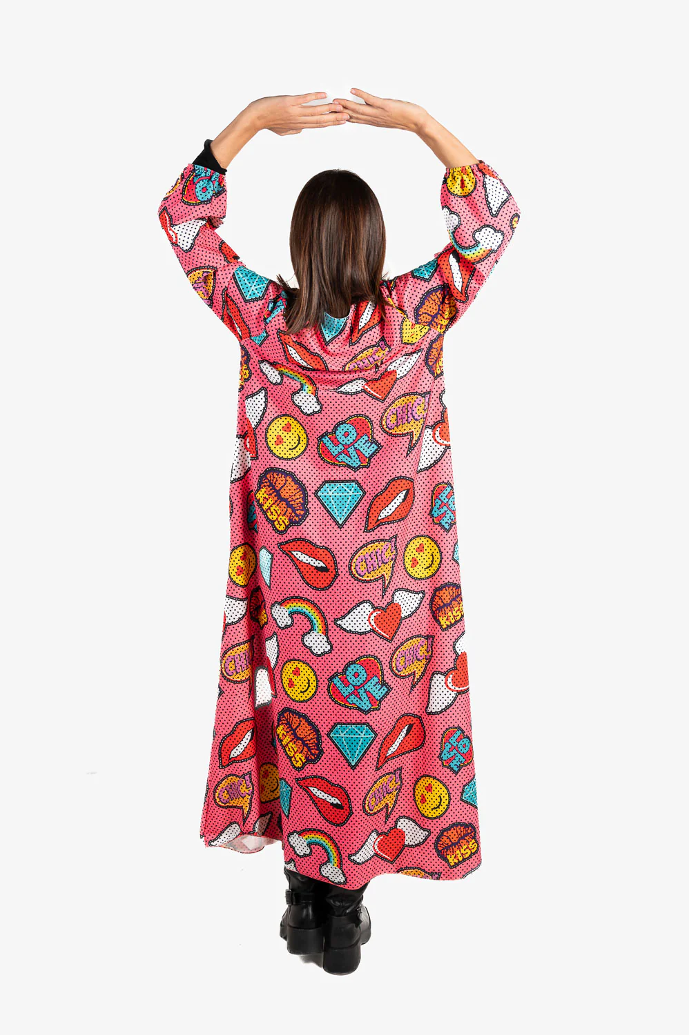 Vestido largo con escote a la caja abierto manga larga con empuñadura elástica y bolsillos laterales. Talla única válida para mujeres S-XXL.