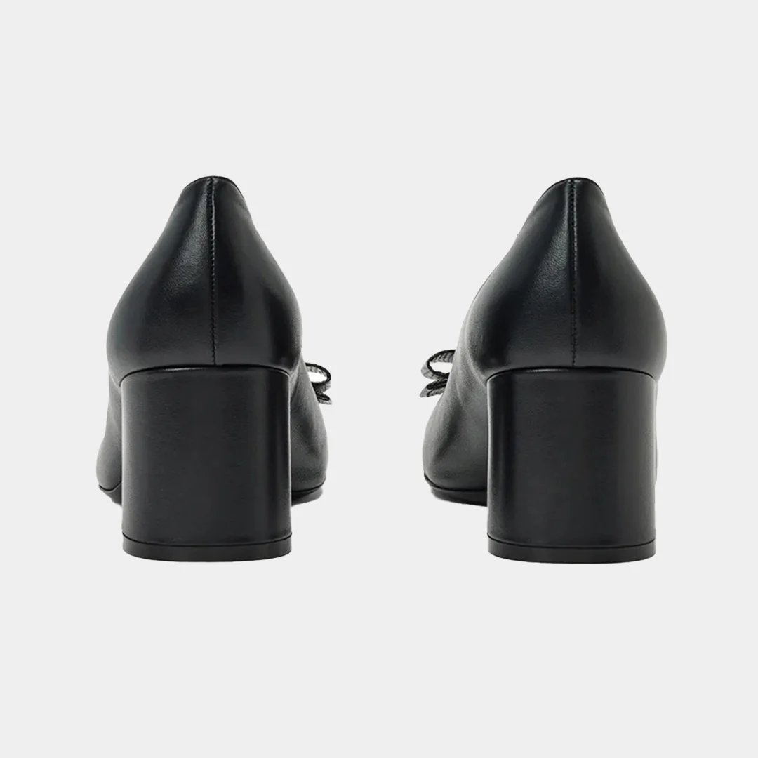 Zapato Ferragamo MELENA para dama, elaborado en cuero liso genuino negro de primera calidad. Diseño italiano con elegancia minimalista y líneas sofisticadas que complementan perfectamente looks formales y ejecutivos. Su tacón bajo tipo bloque ofrece estabilidad y confort durante jornadas prolongadas, mientras que su interior en cuero suave garantiza una experiencia de uso excepcional. Fabricación italiana que asegura la excelencia artesanal característica de la casa Ferragamo.