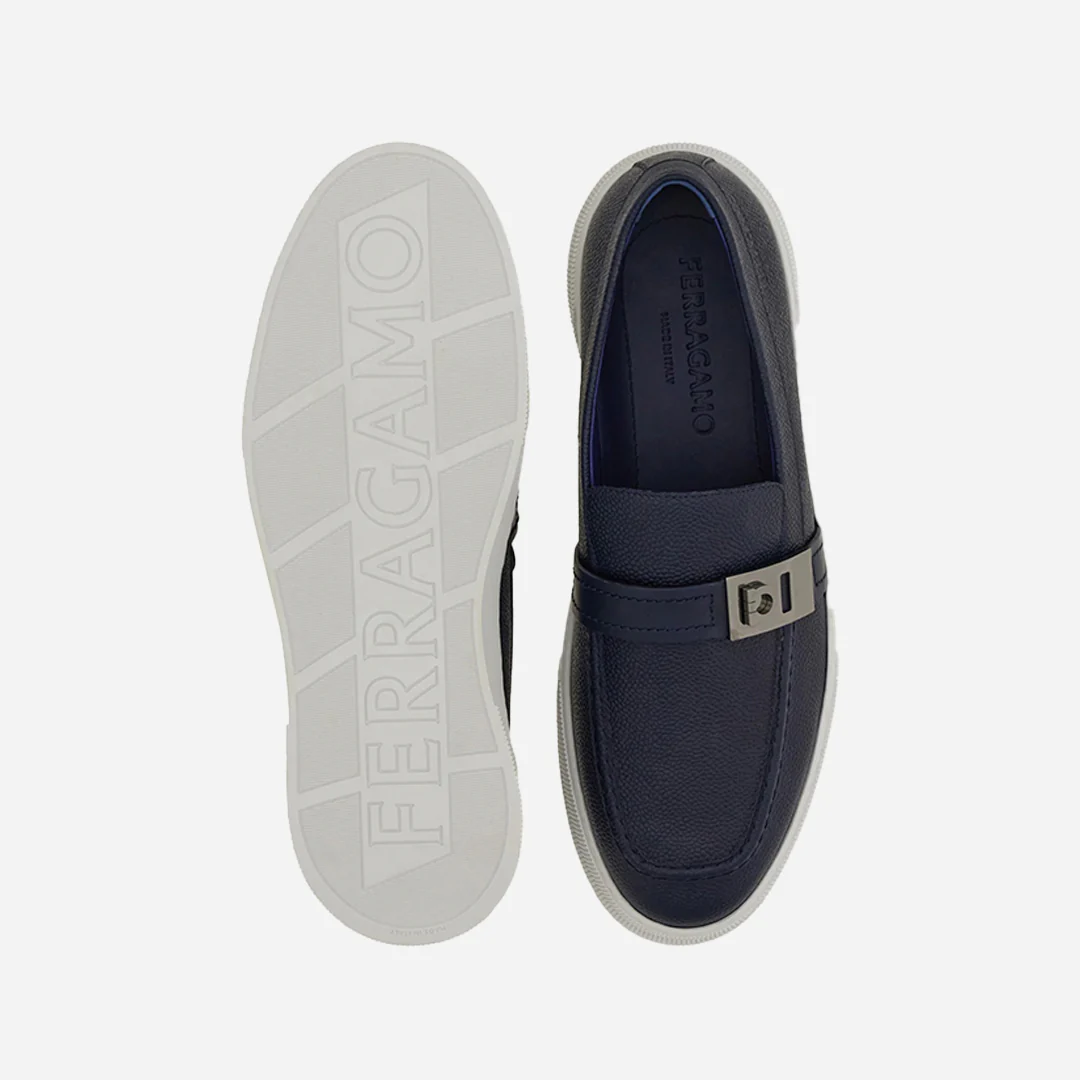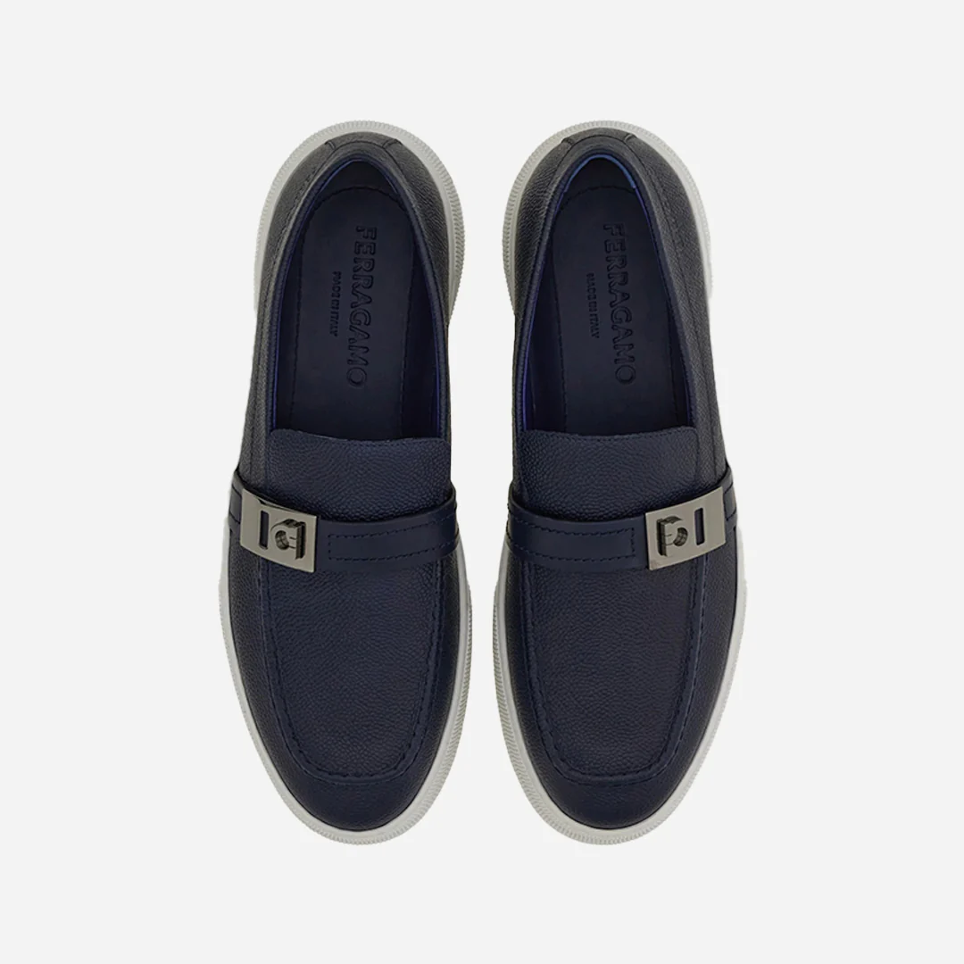 Sneakers híbridas de líneas inspiradas en los mocasines, confeccionadas en piel de becerro con un delicado martillado. El Empeine pespunteado y el antifaz adornado con una hebilla Hug se insertan en una construcción slip-on extremadamente cómoda, completada por la suela de goma ultraligera con moleteados y dibujos personalizados. Perfectos en la ciudad y para los momentos de ocio.