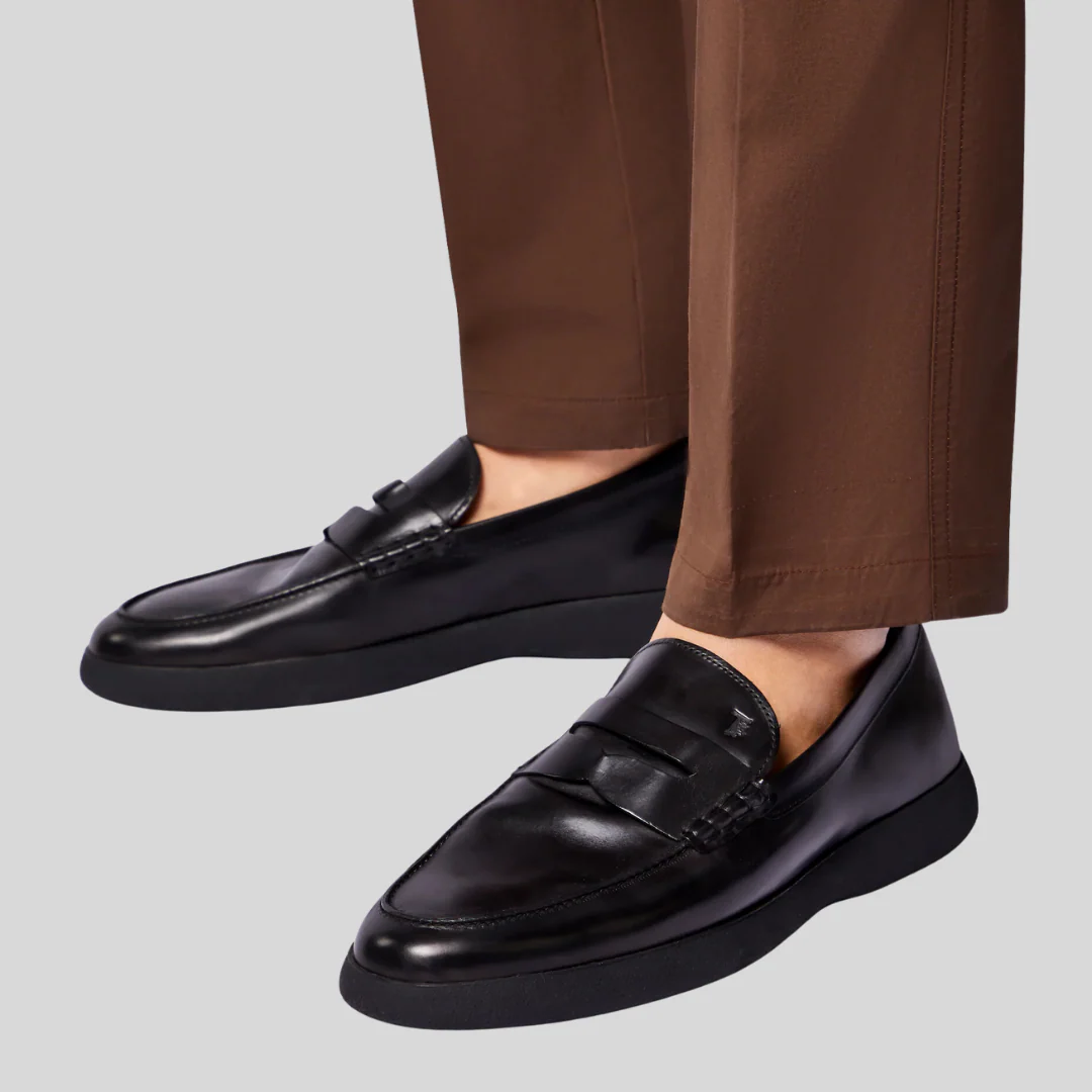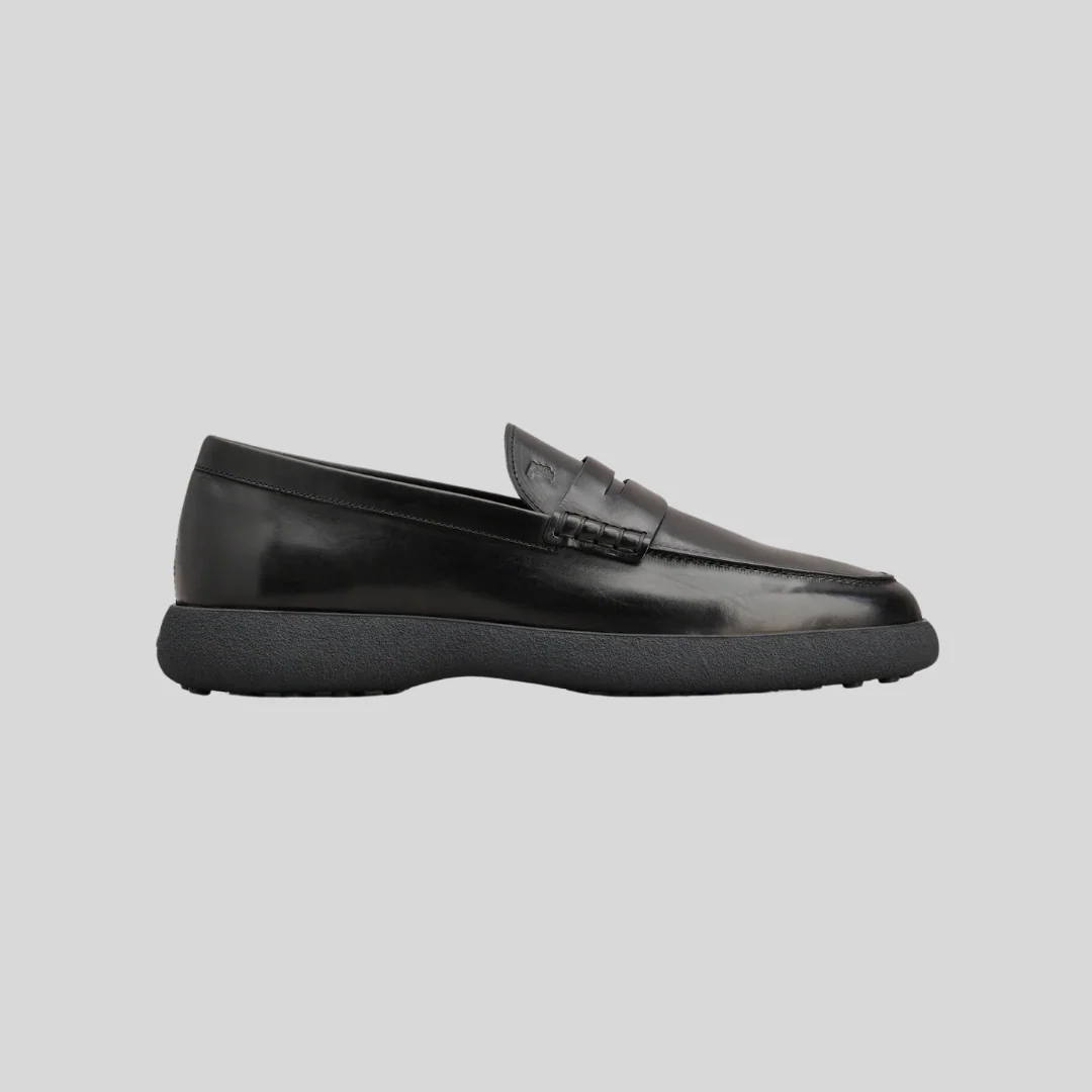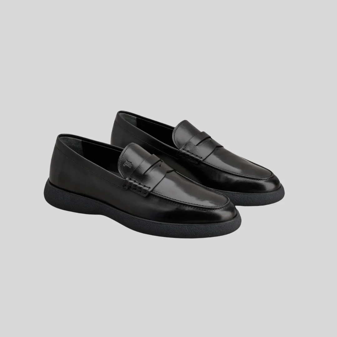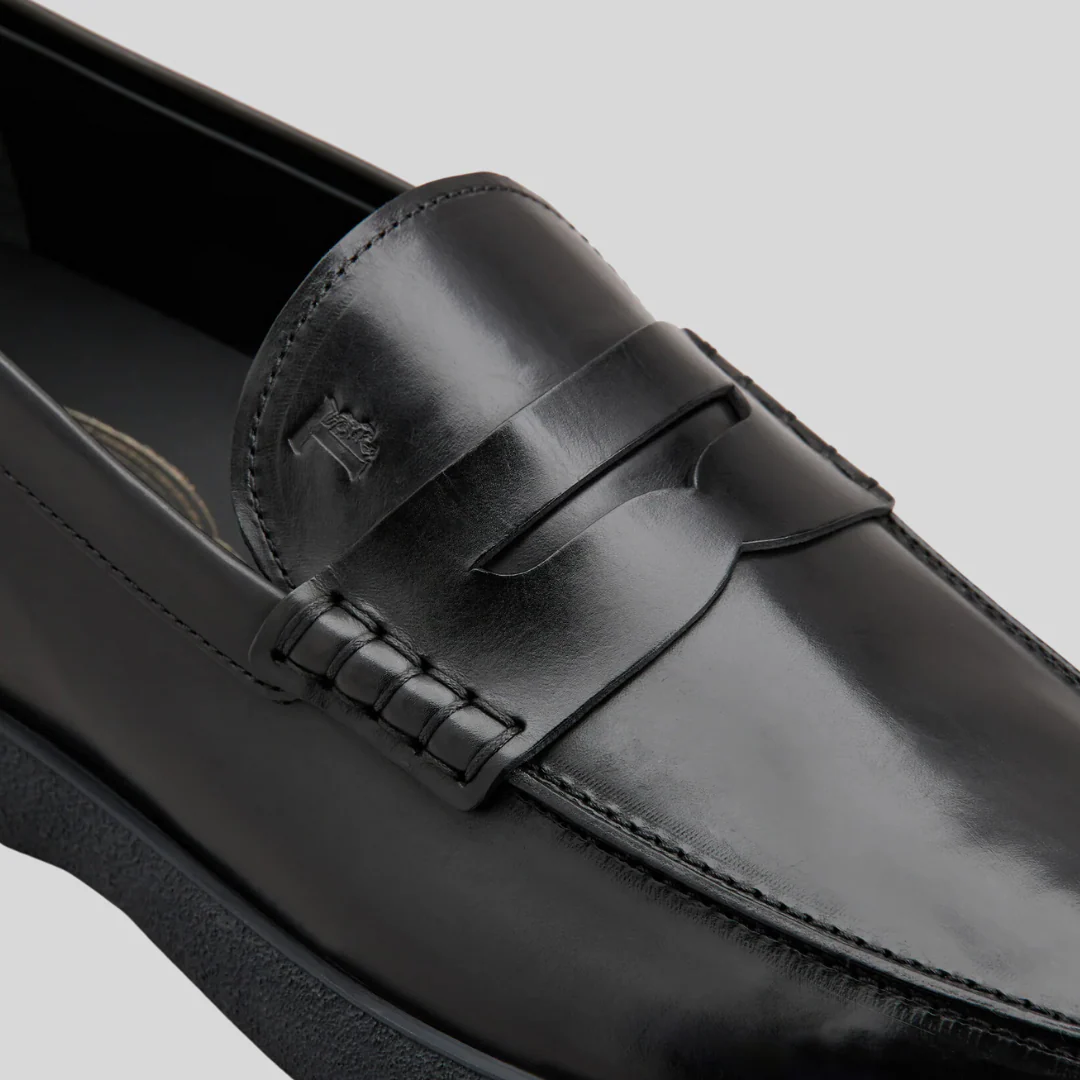 Mocasín en elegante piel semibrillante con antifaz, monograma Tod’s grabado y suela de goma con detalles en relieve.
