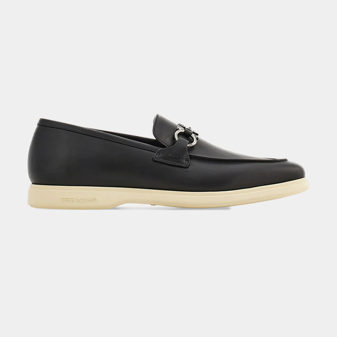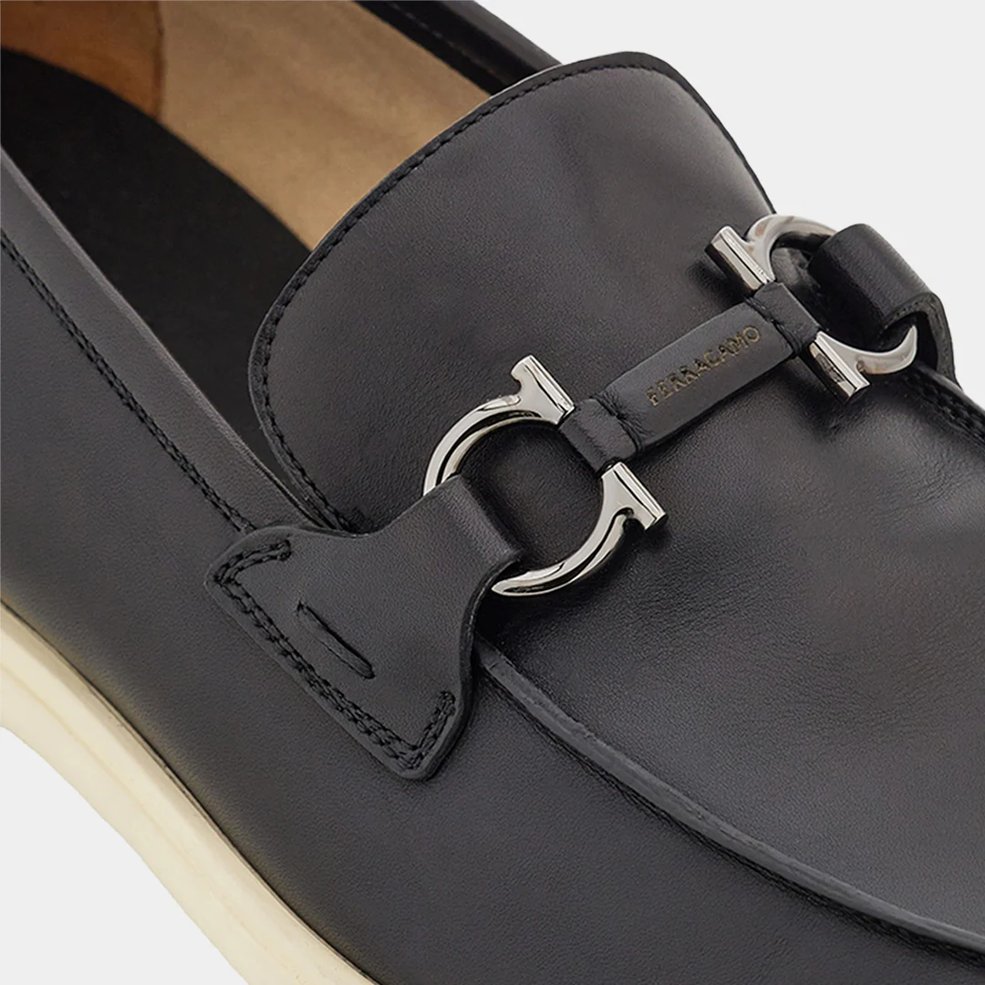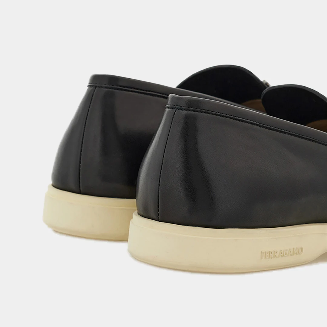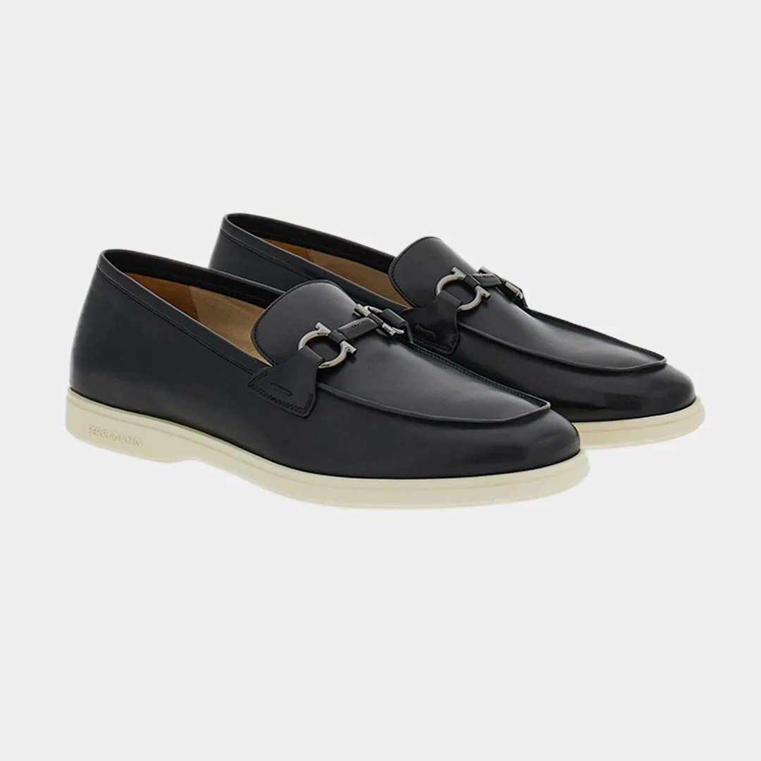 Estos mocasines driver de Salvatore Ferragamo, son una expresión de lujo artesanal y diseño contemporáneo. Confeccionados en piel de becerro flexible, presentan un acabado suave y duradero que se adapta al uso diario con elegancia. El diseño incorpora un adorno Gancini tonal en el lateral y un puente de napa tejida, aportando un toque moderno y distintivo. La construcción tubular artesanal garantiza una sensación ligera y cómoda al caminar, mientras que el empeine cosido a mano resalta la atención al detalle y la calidad propia de la tradición italiana. La suela de goma personalizada ofrece flexibilidad y tracción, completando un calzado ideal para quienes buscan combinar sofisticación y confort en su estilo diario.(774493-COSIMO)