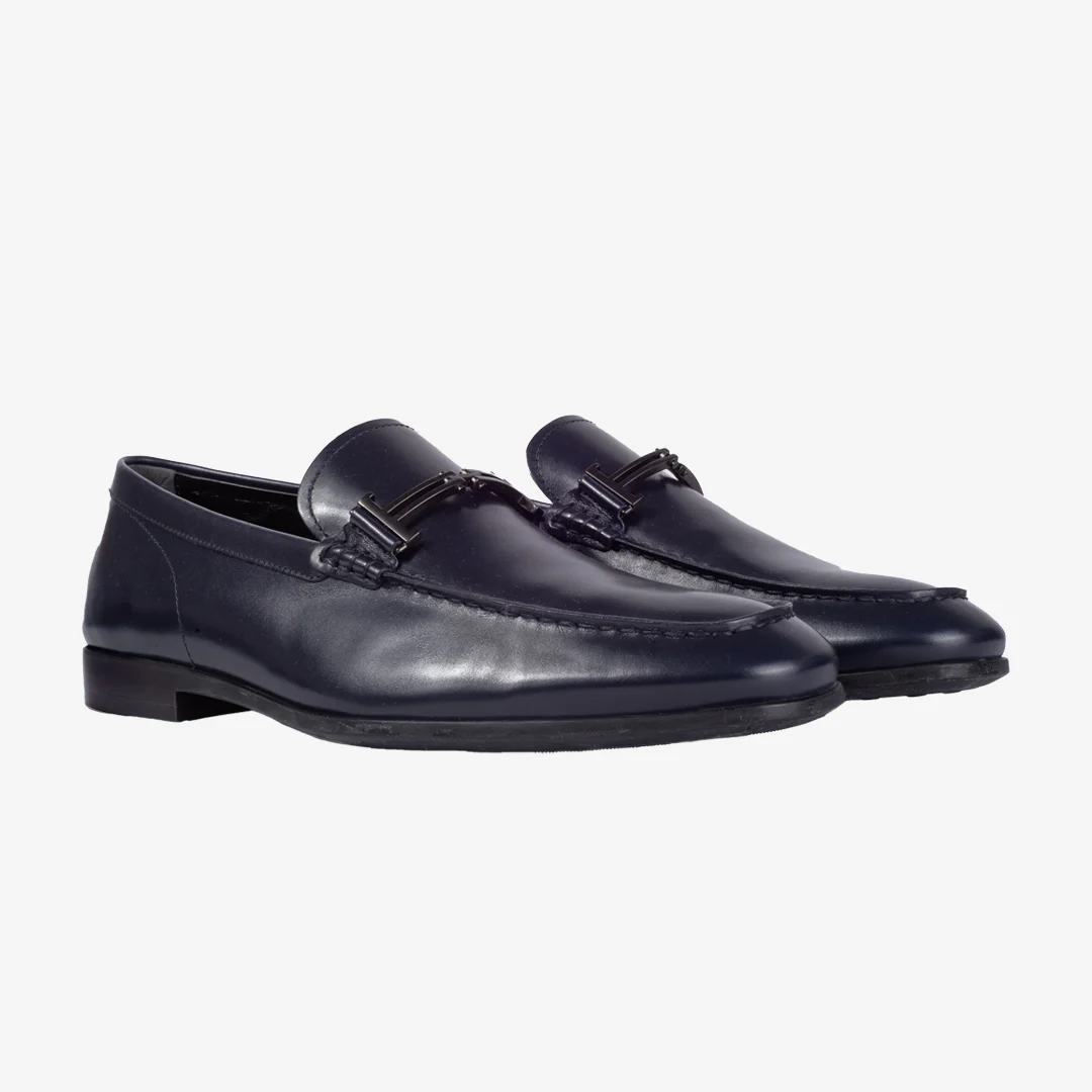 Un diseño atemporal de la marca, los mocasines formales Tod’s en cuero semibrillante están diseñados con costuras a mano expuestas, un adorno de doble T metálico y la icónica suela de goma con forma de guijarro.