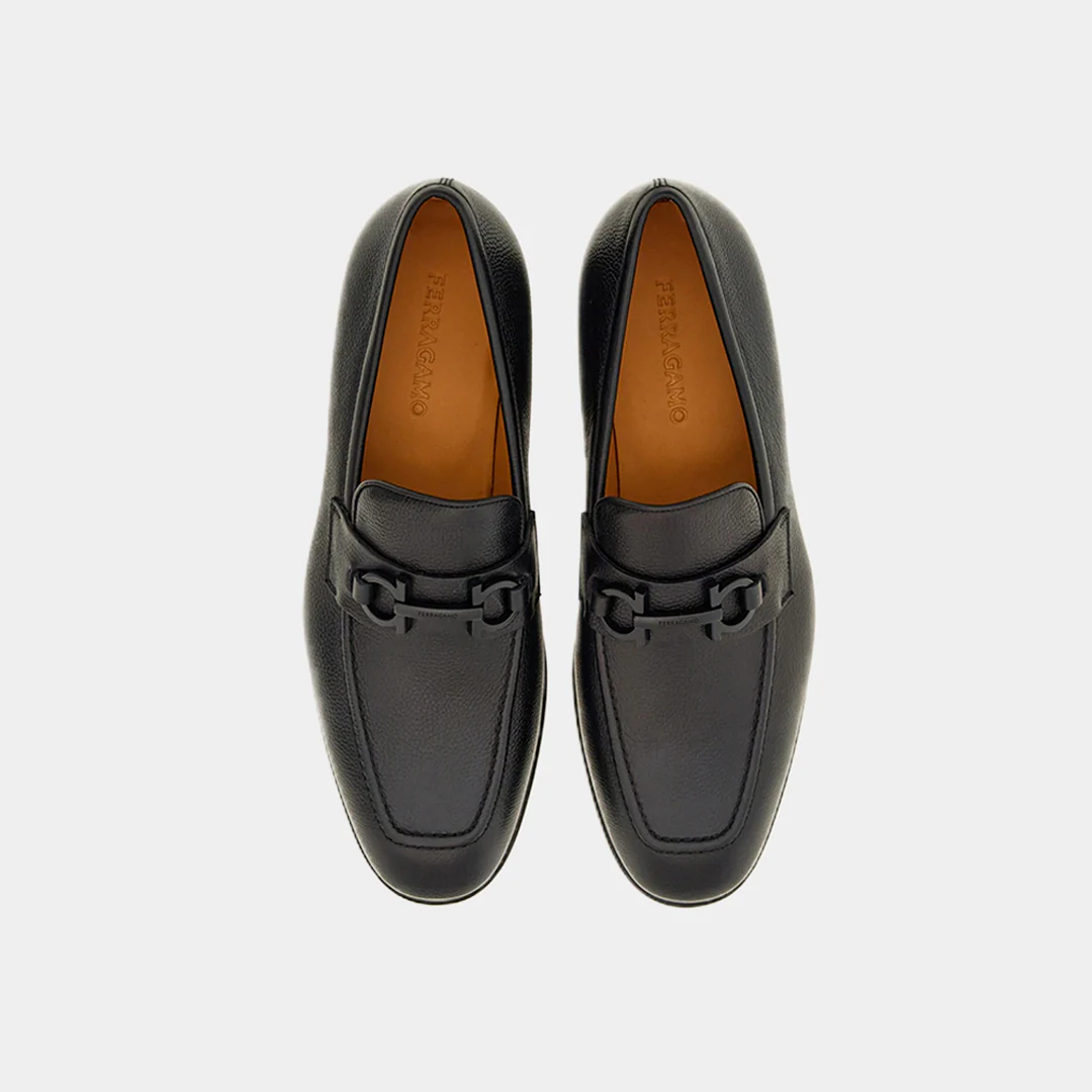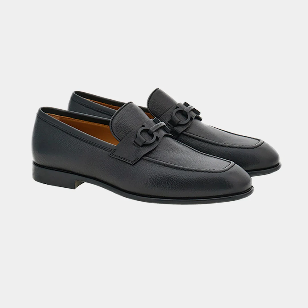 Descubre la sofisticación artesanal en cada detalle de estos mocasines con empeine de piel de becerro martillada. Su exclusivo taponado artesanal revela una doble tonalidad sombreada que aporta profundidad y estilo único. La punta almendrada se combina con un delicado pespunte cuadrado en el empeine, creando un diseño refinado y contemporáneo. La banda transversal está adornada con un elegante detalle metálico Gancini en acabado pintado, que añade un toque distintivo y de lujo. Para brindar comodidad y durabilidad, cuentan con una suela flexible de goma, perfecta para el uso diario sin perder la elegancia.
