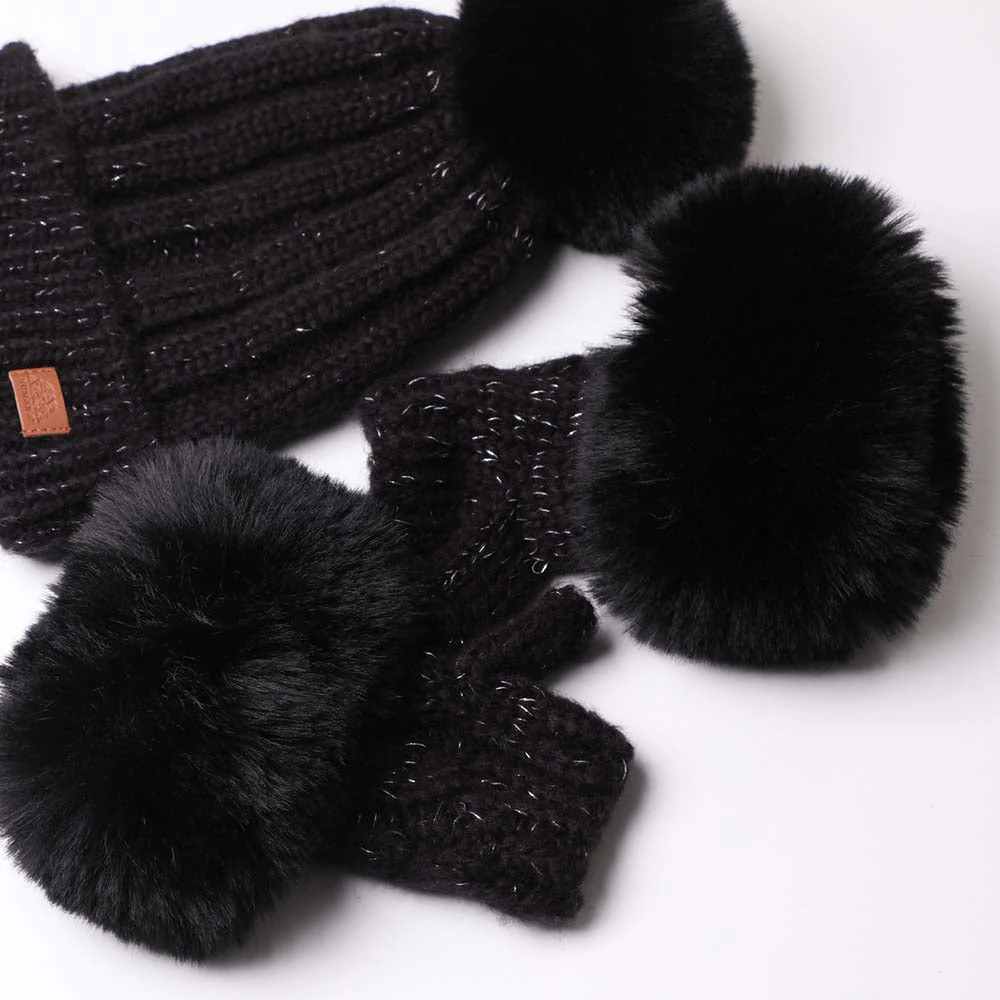 Pack De Gorro Tejido Y Mitones Tejidos Melange Negro Humana