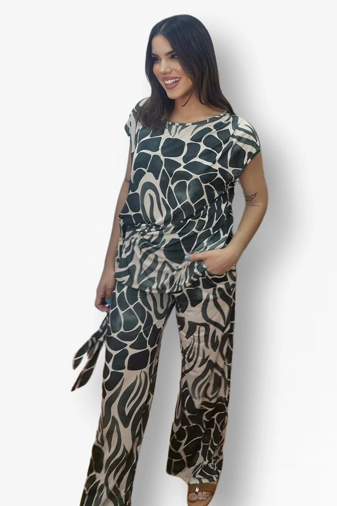 Pantalon Elastico Print Verde
