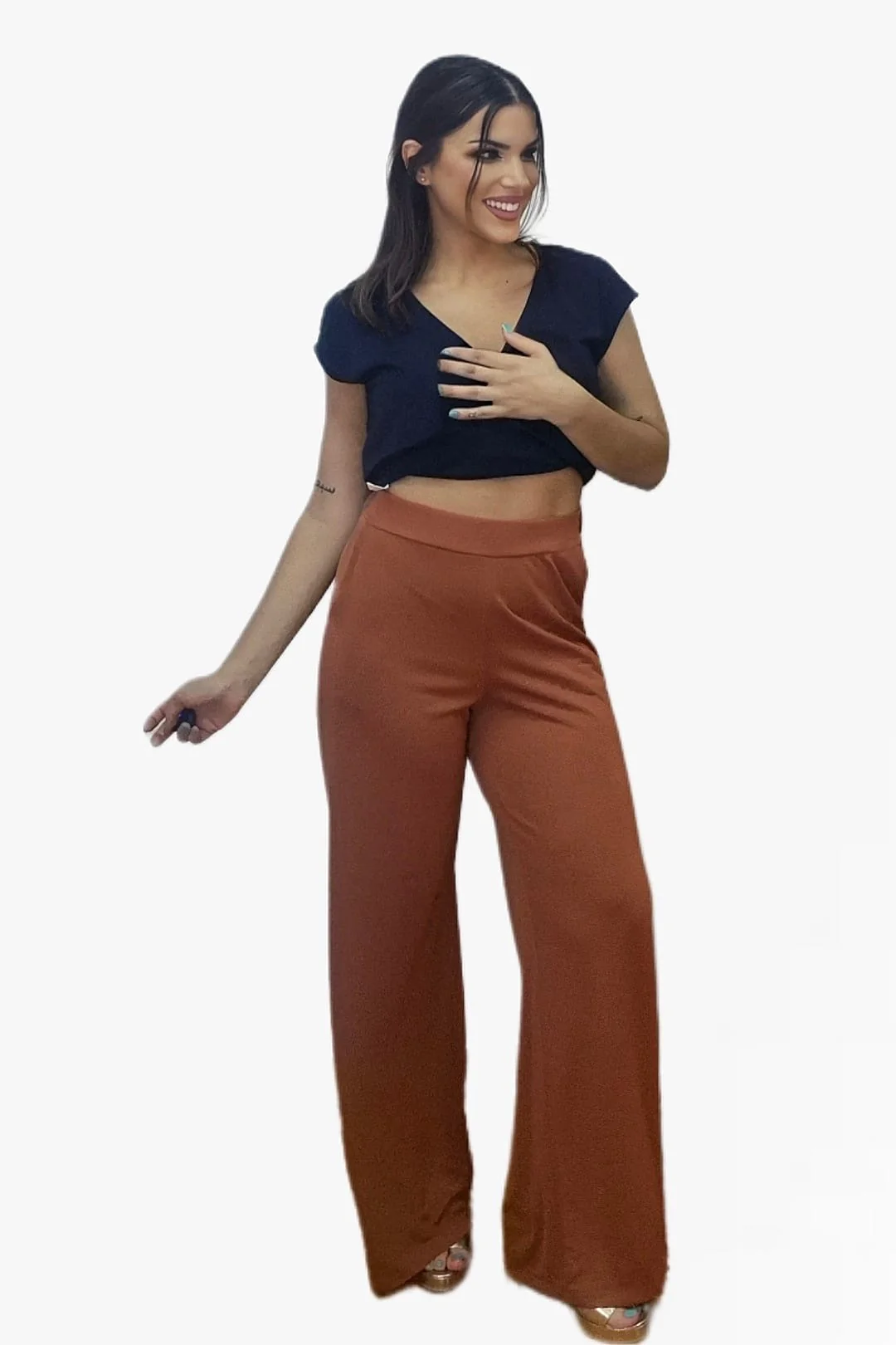 Pantalon Fluido Bolsillos Marr贸n