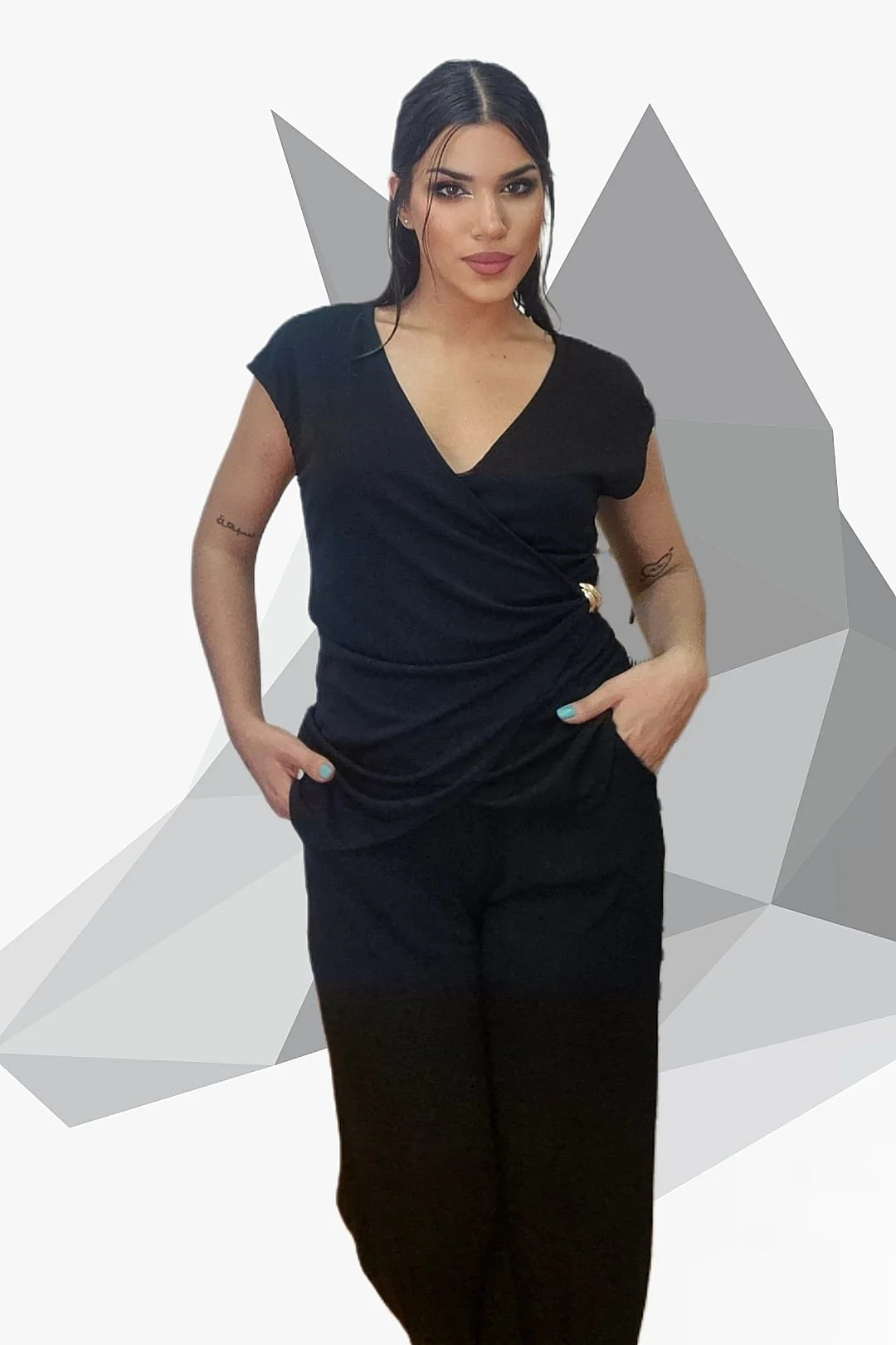 Pantalon Fluido Bolsillos Negro